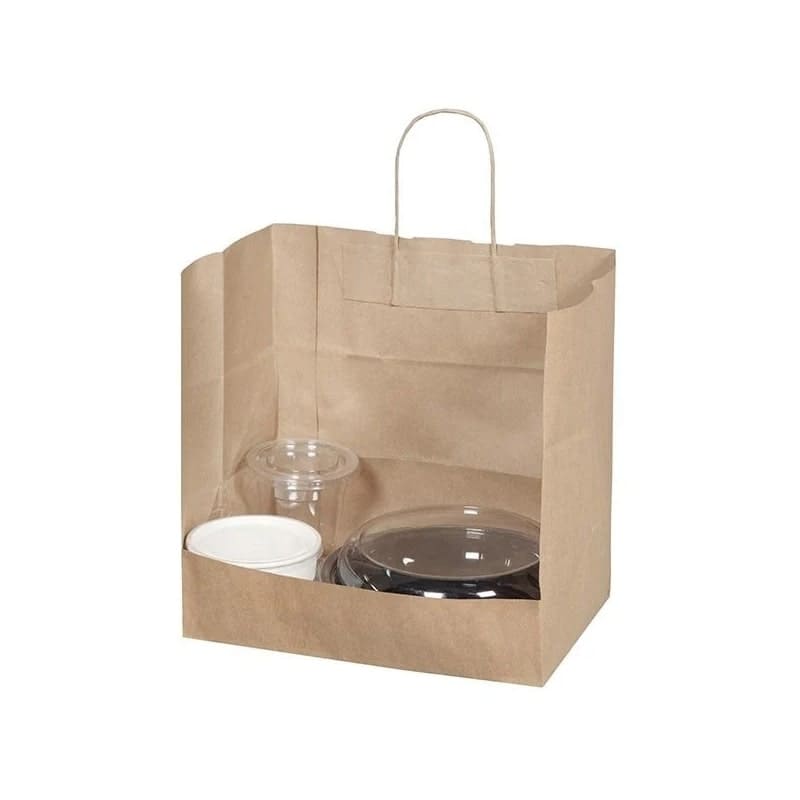 Salata kabı ve sıcak servis yemek kapları gibi geniş tabanlı ürünlere uygun bir üründür. Özellikle 2 ve 3 bölmeli alüminyum ve plastik yemek kaplarına uygun, alt tabanı geniş kağıt çantadır.